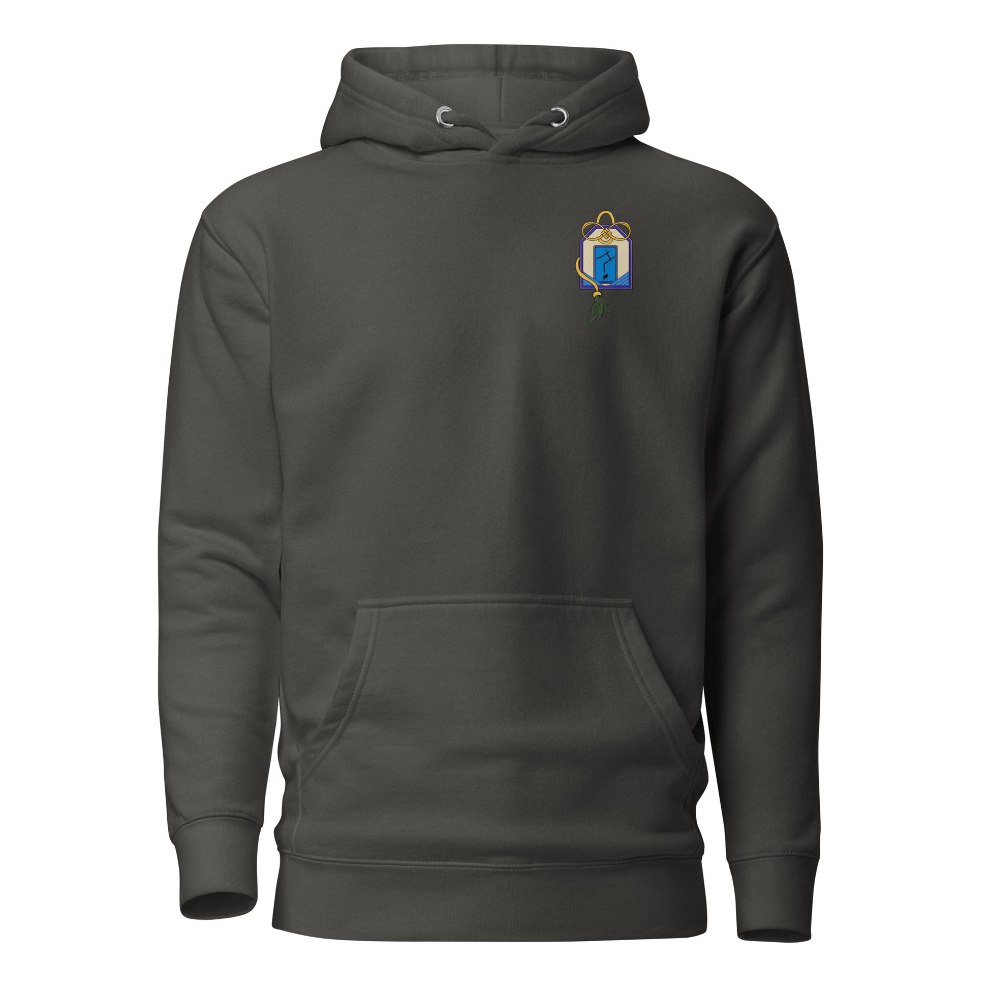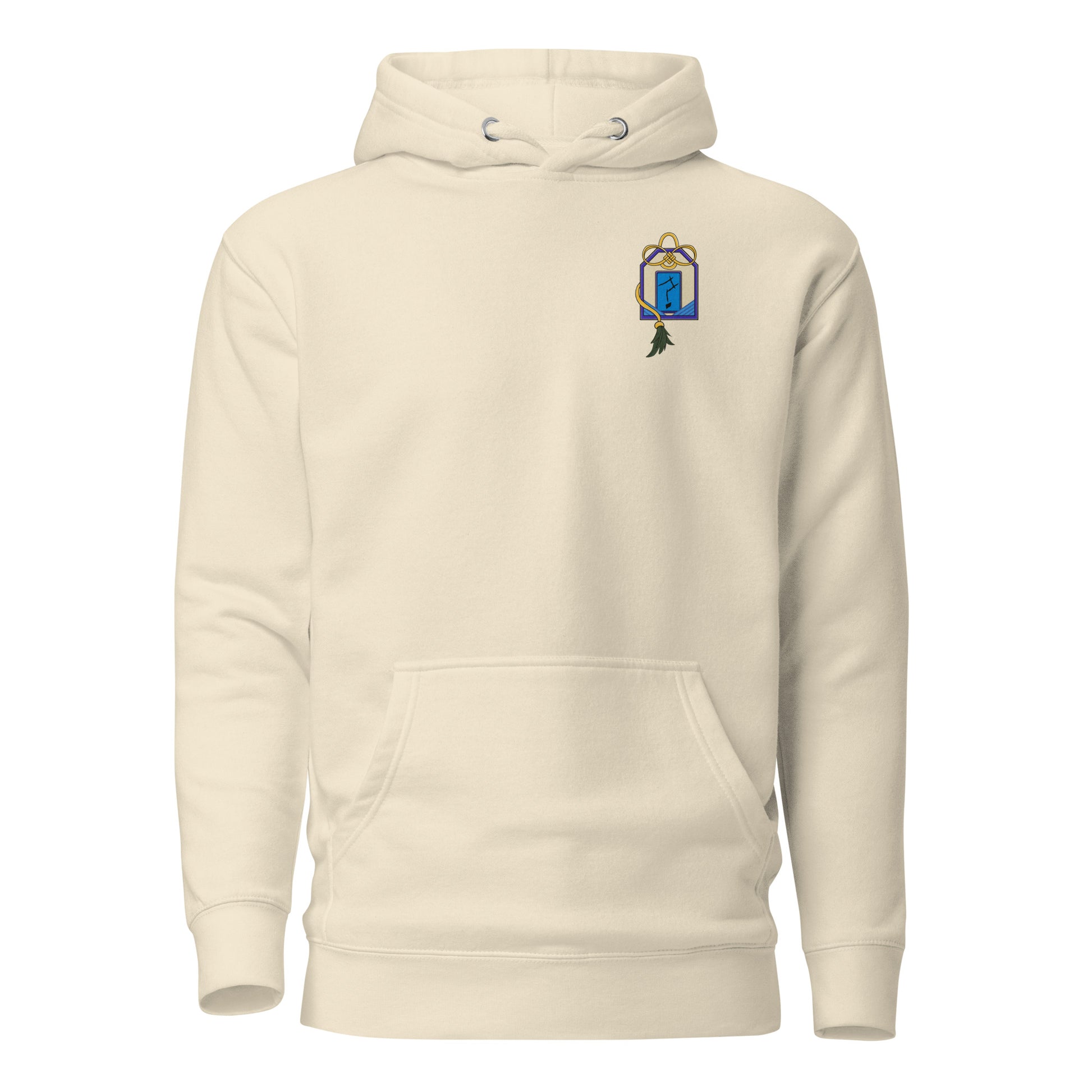 The front design is an Omamori, a Japanese amulet meant to bring good luck and protection from evil.
